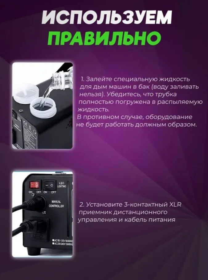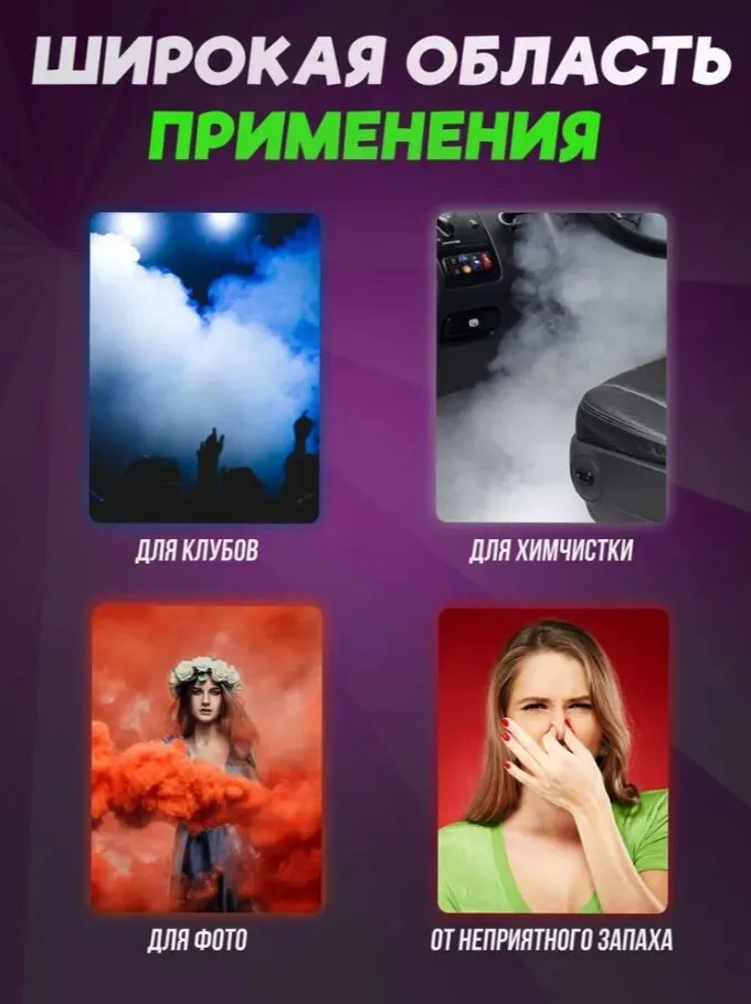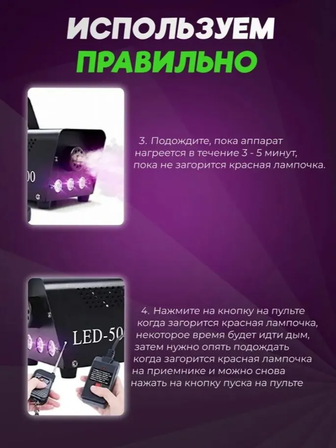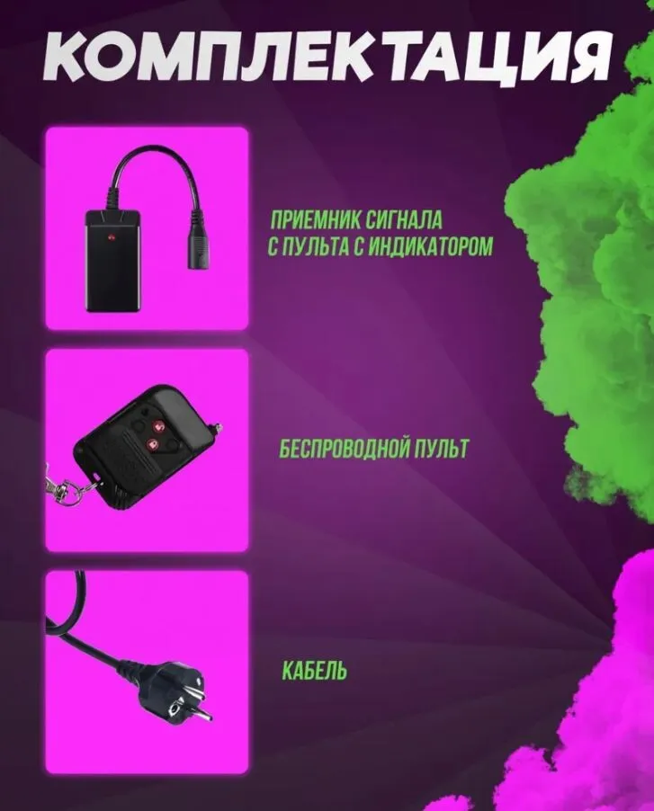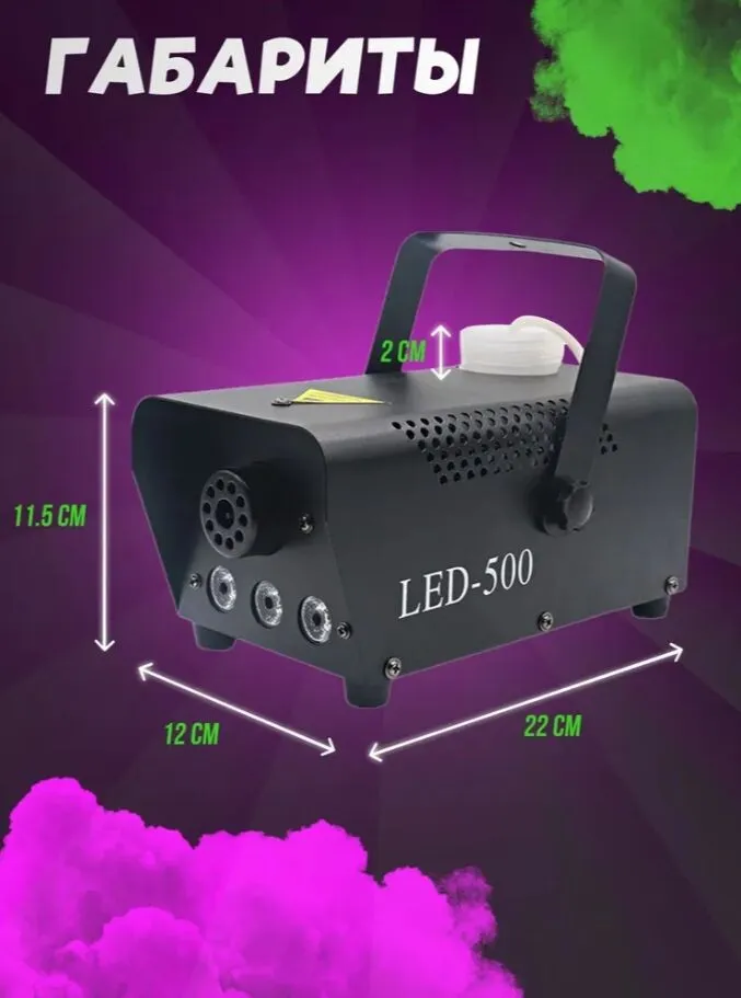 Идеально подходит для домашних вечеринок, фотосессий, театральных представлений и небольших шоу. С ее помощью вы сможете добавить яркие акценты к любому событию. Легкий и портативный дизайн позволяет легко транспортировать дым-машину, а ее надежная конструкция гарантирует долгий срок службы. Превратите ваше мероприятие в незабываемое событие с помощью этой дым-машины!